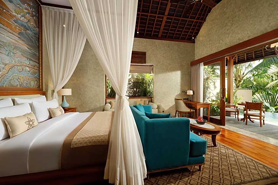is a 5-star wellness retreat on Jalan Raya Keliki, about from Ubud’s city center. Breakfast is offered to start the day, and RUNARA RESTAURANT sets a romantic scene for on-site dining. Spa and wellness packages invite relaxation, while the outdoor swimming pool with a view offers a refreshing dip. For added privacy, private pool options and river-view balconies and terraces enhance seclusion, and live music/performances provide free nightly entertainment.